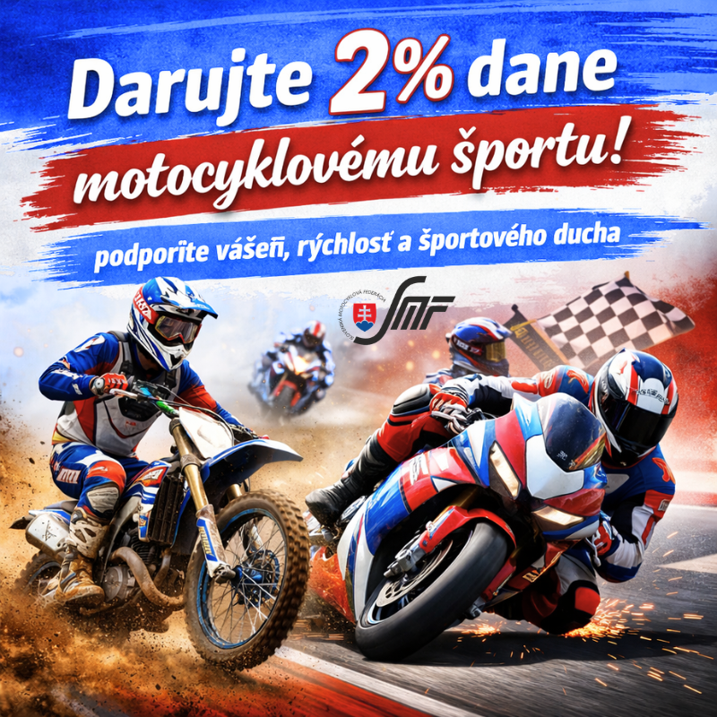 Chcete podporiť náš motocyklový šport formou darovania 2% z podielu zaplatenej dane, tu sú upozornenia na rok 2026: