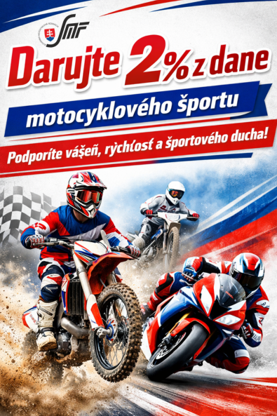 Chcete podporiť náš motocyklový šport formou darovania 2% z podielu zaplatenej dane, tu sú upozornenia na rok 2026: