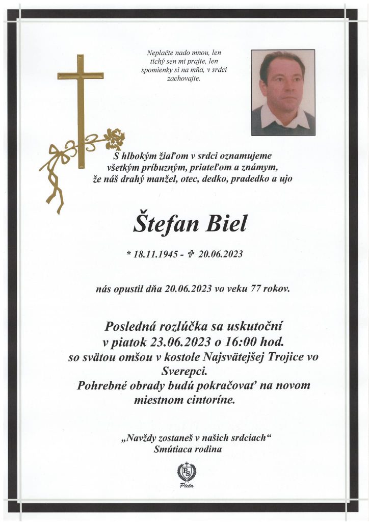 Dňa 20.júna 2023 nás vo veku nedožitých 78 rokov opustil dlhoročný priaznivec motocyklového športu a hlavne motokrosu vo Sverepci, dlhoročný štartér svetových a európskych motokrosových podujatí organizovaných v motokrosovom stredisku Sverepec Štefan Biel.