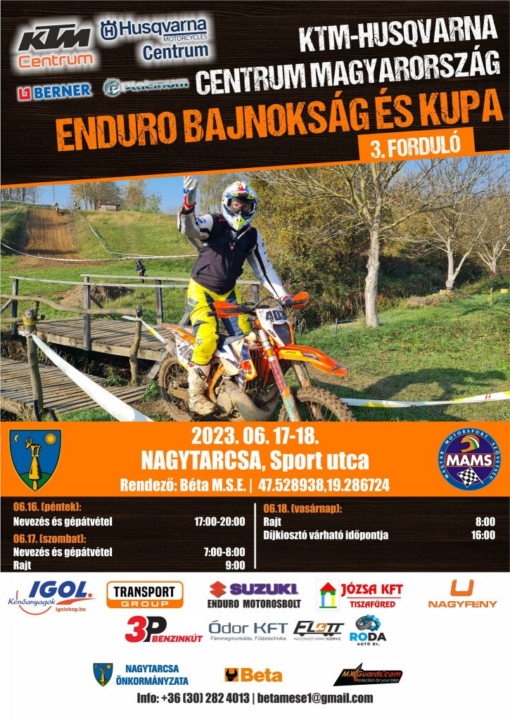 Počas nadchádzajúceho víkendu (17.-18. júna 2023) sa tohtoročný seriál MM SR + SP + Pohár SMF EaR presunie za hranice Slovenska. Štvrtá zastávka slovenského enduro/cc šampionátu sa uskutoční u našich južných susedov, konkrétne v maďarskej obci Nagytarcsa (Veľká Tarča), ktorá sa v našom kalendári objavuje už po tretíkrát v rade (od r. 2021). Náš “majstrák” sa v Maďarsku uskutoční v rámci maďarského enduro šampionátu a v rámci reciprocity našej a MAMS federácie (u nás si maďarskí pretekári svoje preteky odjazdili v Lišove).