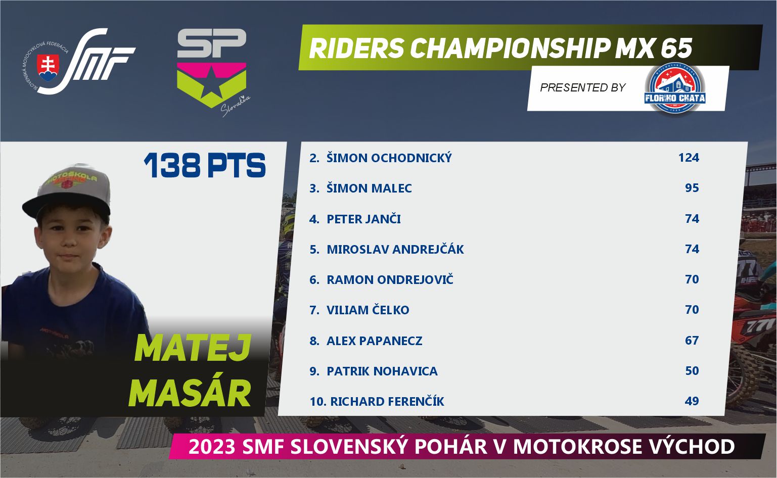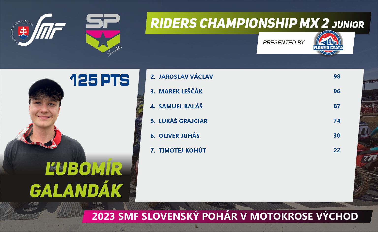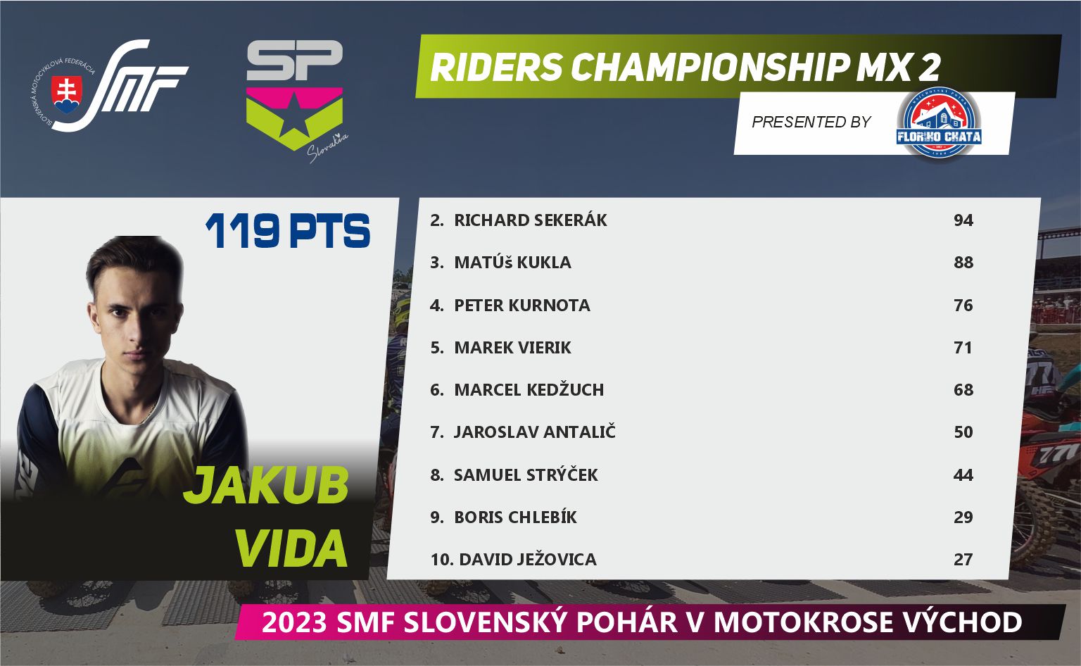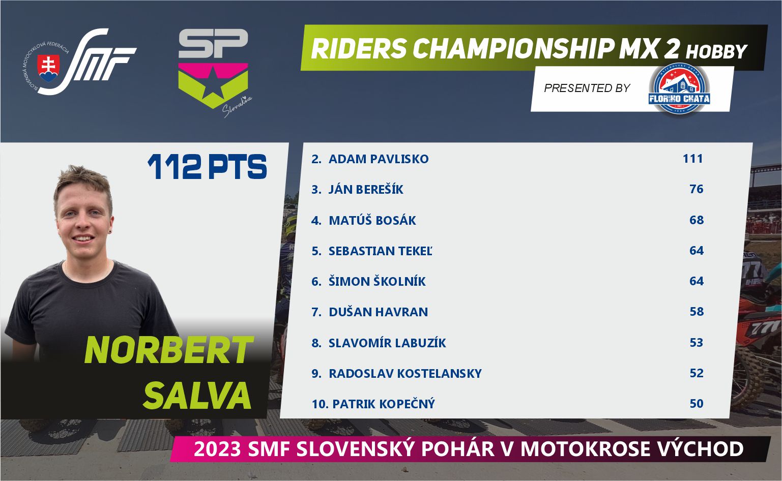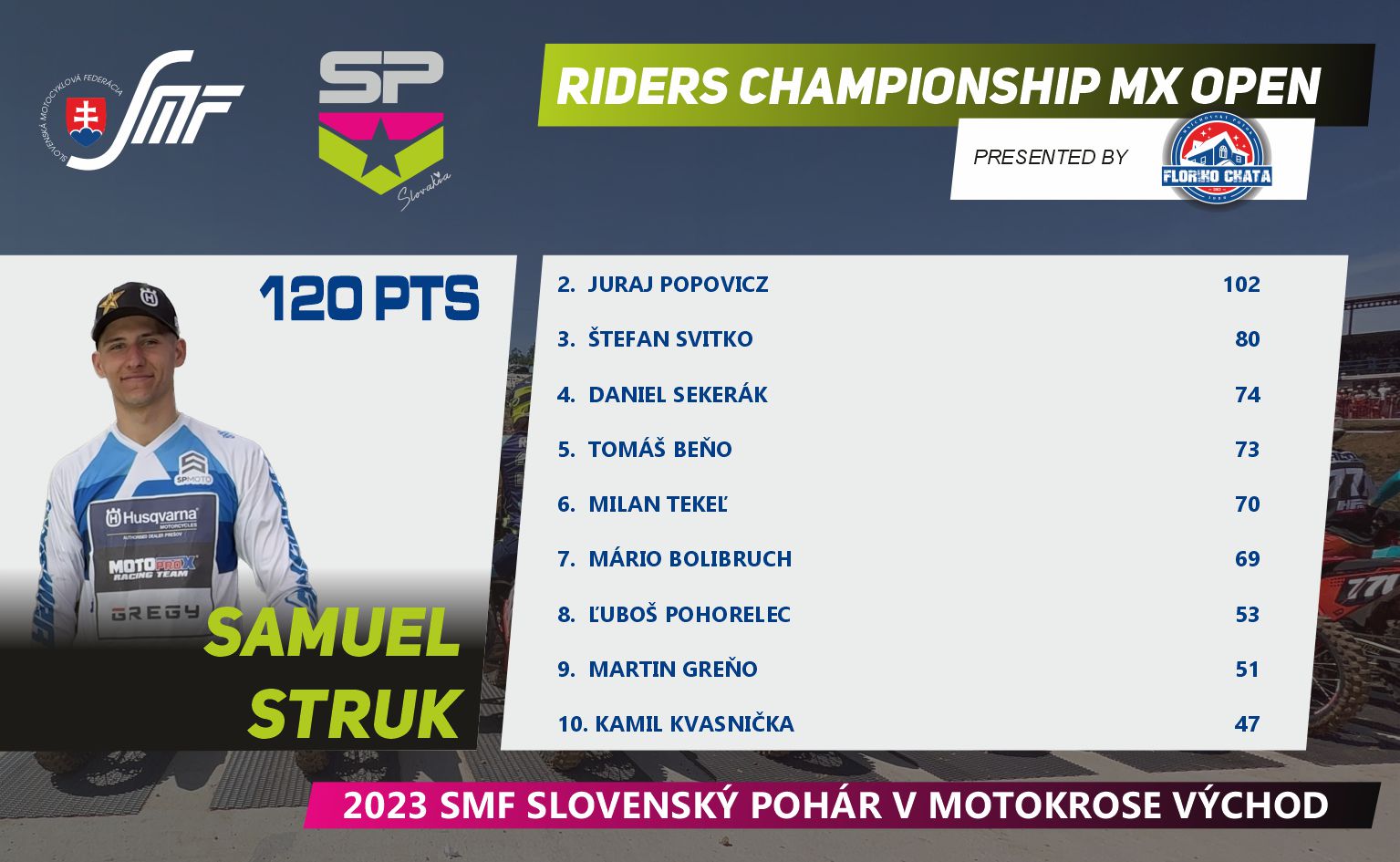 Máme za sebou prvú polovicu Slovenského pohára v motokrose, v tomto seriáli nás čaká letná prestávka, ktorú určite mnoho jazdcov a fanúšikov využije na doliečenie zranení a nabratie síl pred ďalšími piatimi pretekmi. Pokračujeme koncom augusta 27.8.2023v Širokom.