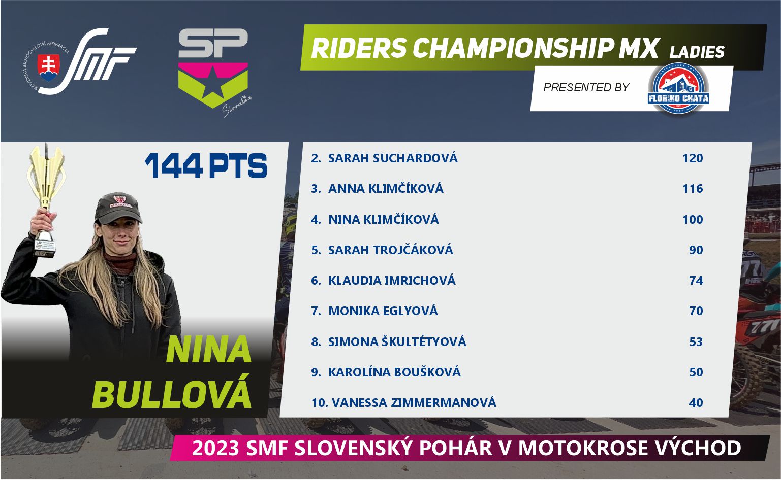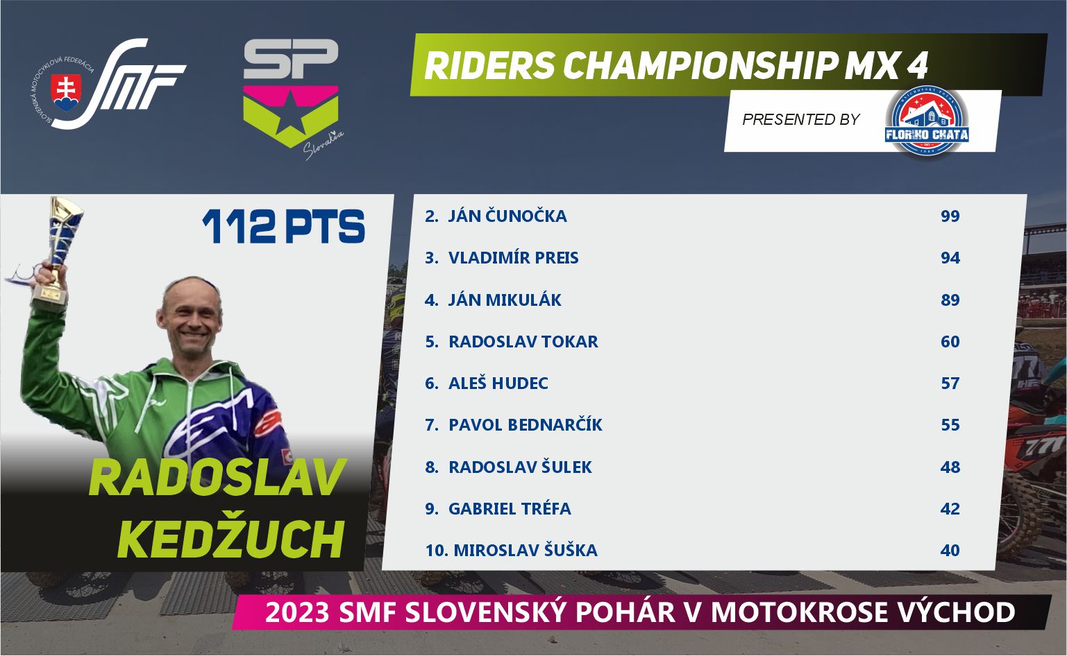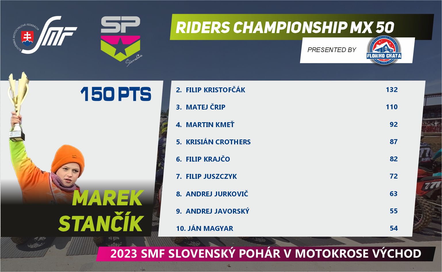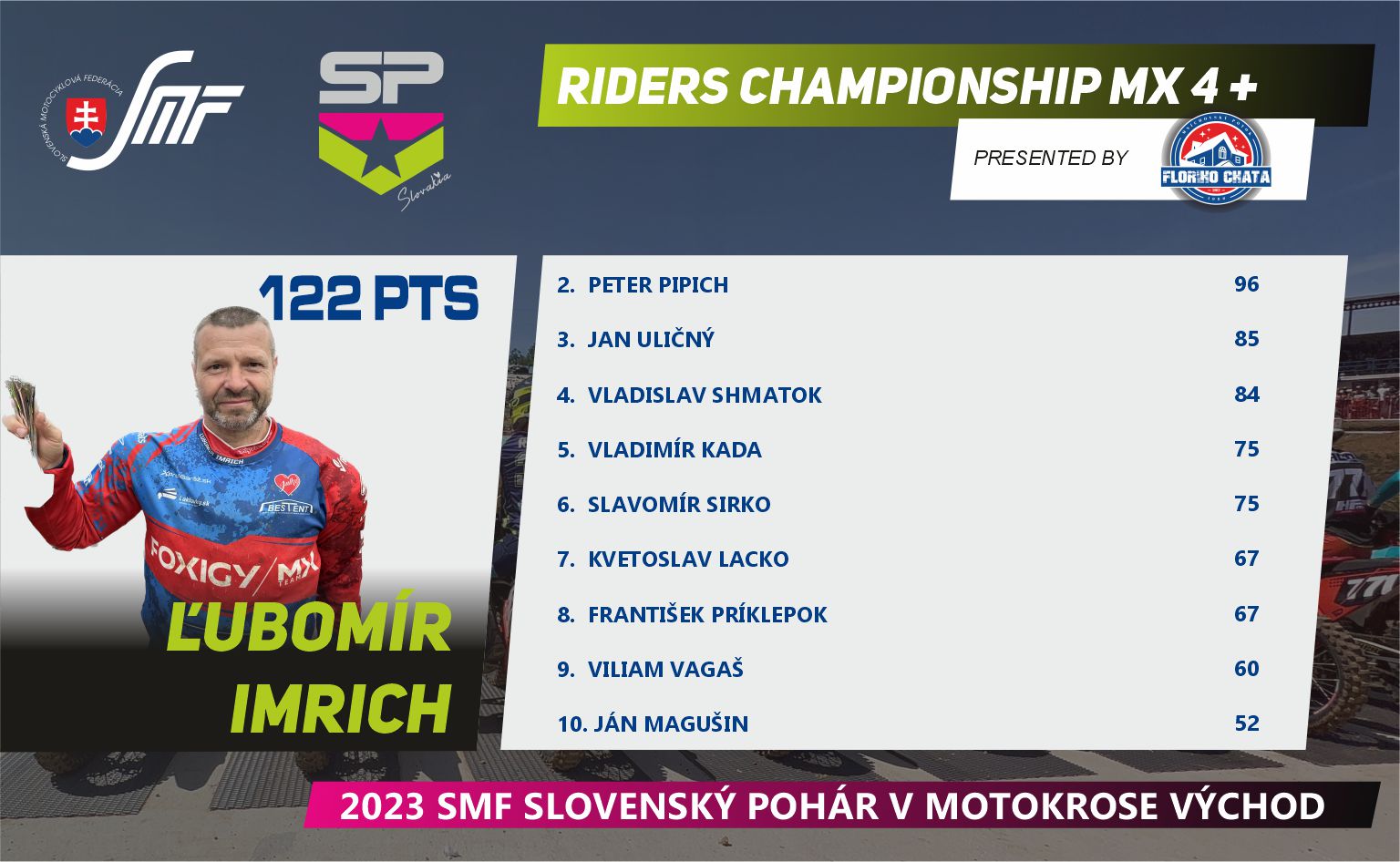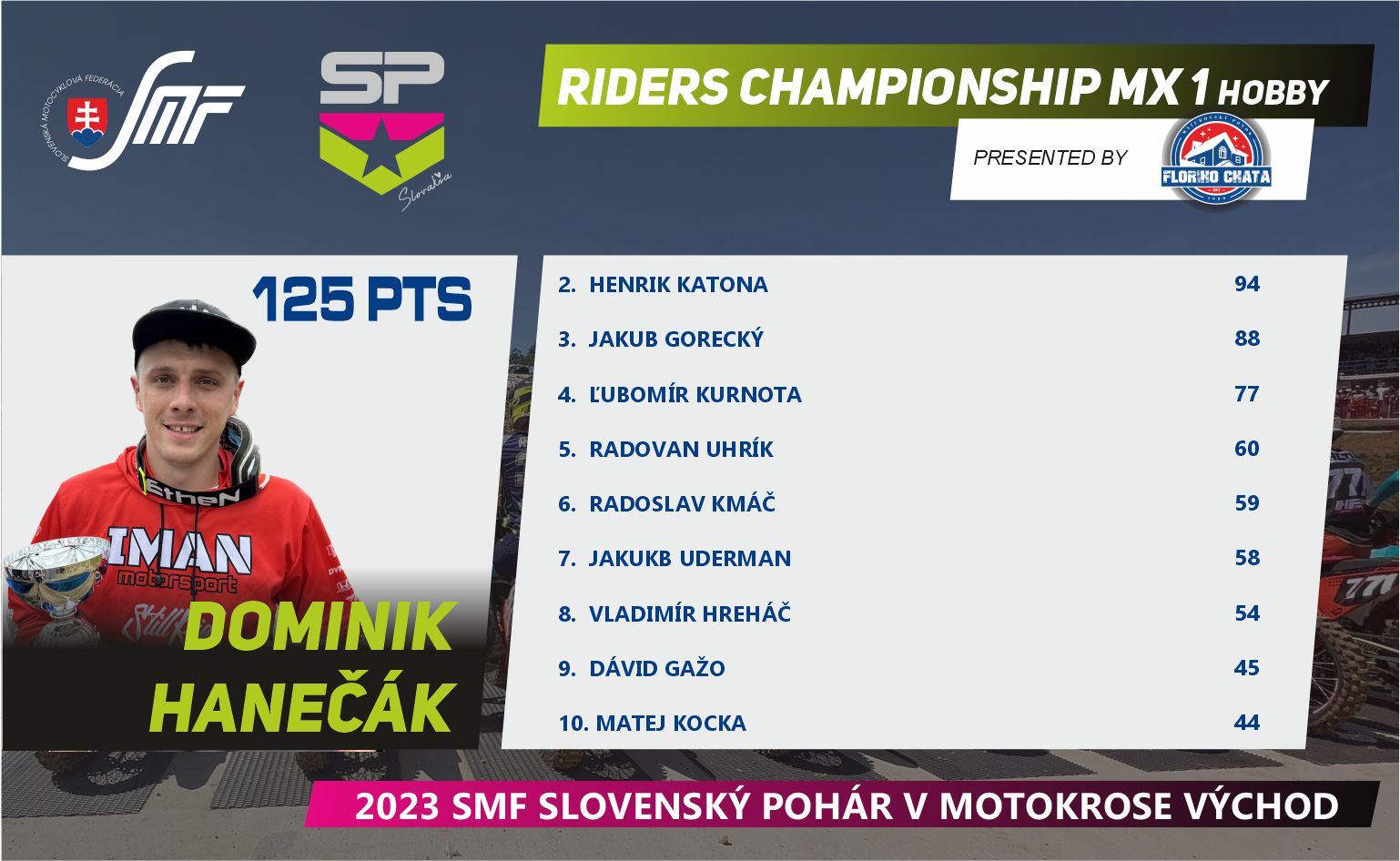 Máme za sebou prvú polovicu Slovenského pohára v motokrose, v tomto seriáli nás čaká letná prestávka, ktorú určite mnoho jazdcov a fanúšikov využije na doliečenie zranení a nabratie síl pred ďalšími piatimi pretekmi. Pokračujeme koncom augusta 27.8.2023v Širokom.